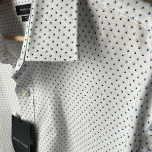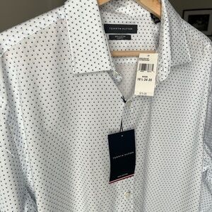 Tommy Hilfiger Men’s Aruba White W/Blue Design L/S Button Up 16.5, 34/35 NWT $75