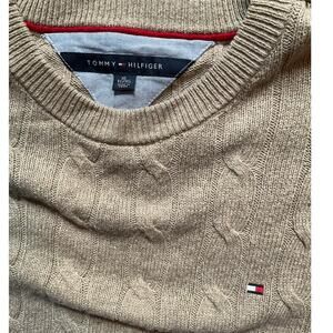 Tommy Hilfiger Men’s Beige Cable Knit Cotton Sweater Size XL Classic Crew Neck Pullover