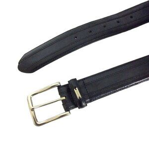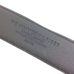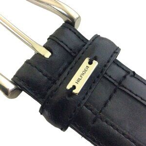Tommy Hilfiger Mens Belt Size 38 Black Bonded Leather Topstitched Nickel Buckle