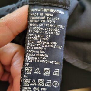 This black Tommy Hilfiger button-up shirt tells of effortless sophistication. Crafted from 100% cotton, it combines comfort and elegance with its timeless design. The XXL size ensures a relaxed fit, while the understated logo adds a touch of refinement. Made in India, it's a versatile piece for your wardrobe. In great pre-owned condition.