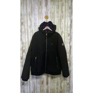 Tommy Hilfiger Men's Black Jacket Full Zip Logo Heavy Coat Hooded XL