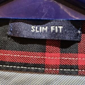 Tommy Hilfiger Men's Black and Red Plaid Shirt Slim Fit