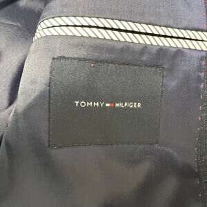 Tommy Hilfiger Men’s Blazer Suit Jacket & Pants Set Navy Blue Plaid Button Up
