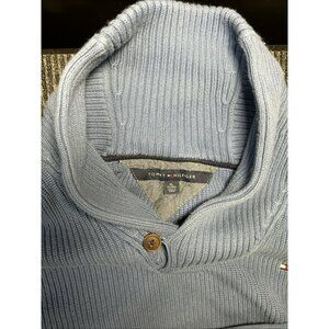 Tommy Hilfiger Men’s Blue Cotton Cable Knit Sweater XL Cowl Neck Pullover EUC