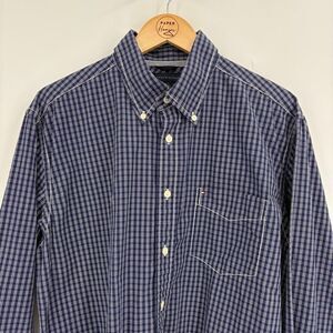 Tommy Hilfiger Men's Blue Plaid Long Sleeve Button Down Shirt Sz Large, Western