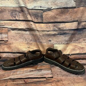 Tommy Hilfiger Men's Brown Leather Fisherman Sandals 9.5 M Adjustable Strap