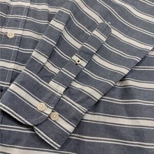 Tommy Hilfiger Men's Button-Down Shirt Size Medium Classic Fit Button Collar.  Long sleeves.  Oxford style shirt with button down collar.  Grayish blue and white stripes.  Preowned excellent condition.  From a non-smoking home.