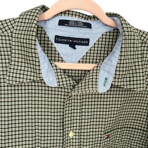 Tommy Hilfiger Mens Button Up Cotton Shirt Size XXL Green Plaid Dadcore Preppy