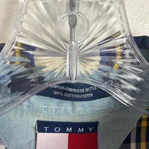 Vintage Tommy Hilfiger Men's Button Up Tartan Plaid Shirt with Crest Logo