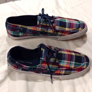 Tommy Hilfiger Men's Canvas plaid boat shoes Size 13 NWOT