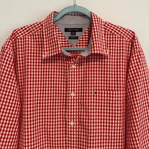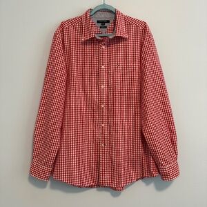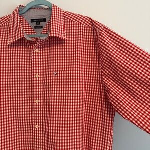 Tommy Hilfiger Mens Classic Fit Red Check Button-Down Shirt Size XL Long Sleeve