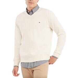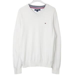 Tommy Hilfiger Men's Classic V-Neck Sweater White Cotton Knit Medium