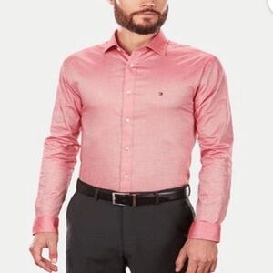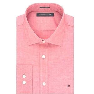 Tommy Hilfiger Men's Classic/Regular Fit Stretch Solid Dress Shirt,Cherry