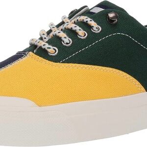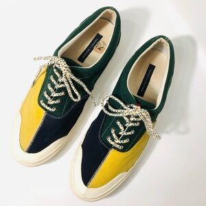 Stylish Tommy Hilfiger sneakers with a green, navy and yellow canvas design. In excellent gently used condition.