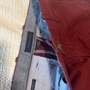 Tommy Hilfiger Men's Custom-Fit Chino Pants in Wine, Size 31 x 32. They are straight through the hip and thigh with a slim leg. They are like new condition. 100% cotton.