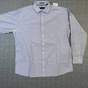 Tommy Hilfiger Men's Dress Shirt Blue Cotton Wrinkle Resistant Size XL