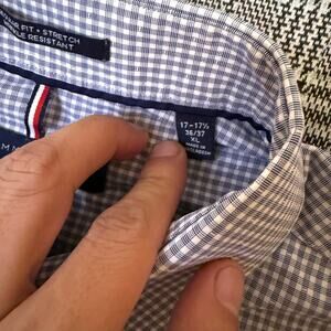 Tommy Hilfiger, mens dress shirt, blue shirt, wrinkle resistant, cotton button up, size XL, long sleeve shirt, business shirt, office wear, casual dress shirt, modern fit shirt, classic style, tailored shirt, comfortable cotton, versatile work shirt, stylish button down, timeless fashion shirt, Tommy Hilfiger menswear, everyday wear