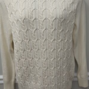 Tommy Hilfiger Mens Flag Logo Cable Knit Sweater Beige Cream Size XXL Old Money