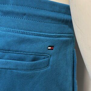 These Tommy sweatpants are a size XL. Features a red, white, and navy drawstring on a ribbed waistband. Has 3 pockets with the back pocket featuring the Tommy logo. Bottom cuffs are, also, ribbed. Gently used, but in excellent condition.