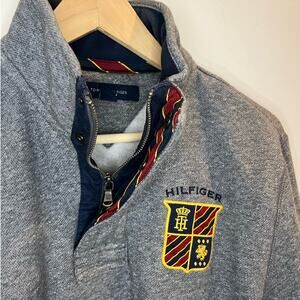 Tommy Hilfiger Mens Gray Zipper Pull Over Size Medium Crest Embroidered