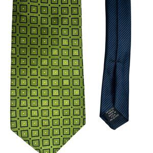 Tommy Hilfiger Mens Green & Navy 100% Silk Geometric Pattern Tie
