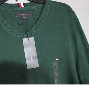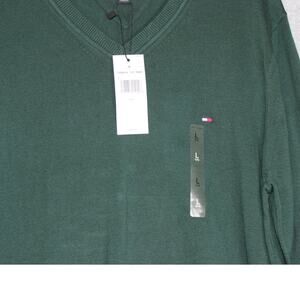 Tommy Hilfiger Men's Green Solid V-Neck Cotton Pullover Sweater NWT Size Large