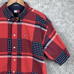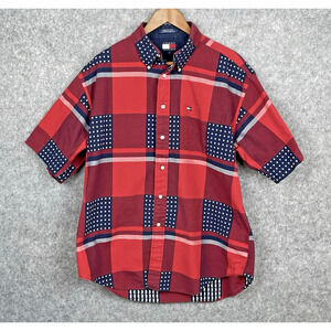 Tommy Hilfiger Mens July 4th Y2K Patchwork Plaid Shirt Size L Americana Preppy