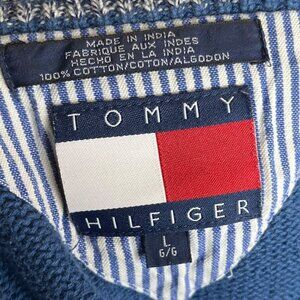 Tommy Hilfiger Men's L Crewneck Pullover Sweater Blue Classic Flag Logo Cotton