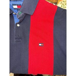 Tommy Hilfiger Mens LARGE Polo Shirt 2-button Front Red and Blue Short Sleeve