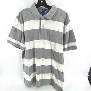 Tommy Hilfiger Men's Large Polo Shirt Custom Fit Preppy Gray Striped Rugby
