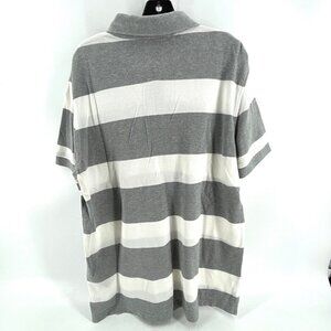 This Tommy Hilfiger Men's Large Polo Shirt is a stylish preppy gray striped rugby design. The custom fit ensures a flattering silhouette, while the pure cotton material offers comfort and breathability.