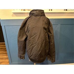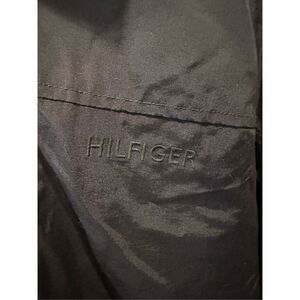 Layer up in this men's jacket from Tommy Hilfiger when the weather calls for added protection. Lightweight and waterproof. Zip front closure. Mock collar with packable hood. Slight waist open pockets; interior pocket with hook-and-loop closure.