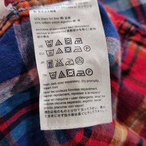 Tommy Hilfiger Mens Linen Red Blue Plaid Custom Fit Button Up Shirt Size Large