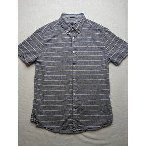 Tommy Hilfiger Mens Linen Short Sleeve Button Down - Medium Gray White Stripe