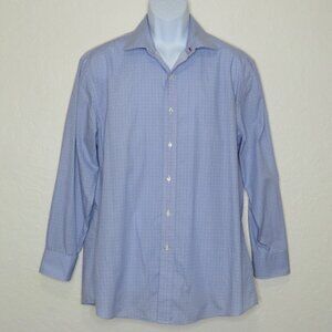 Pre-Owned Condition! 100% Cotton. Handsome Blue & White BOHO Print Long Sleeve Shirt with White Glossy Buttons(spares attached). Size 17" (34/35).
