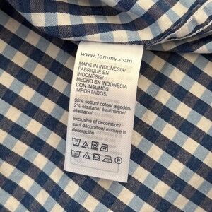 Tommy Hilfiger Men’s Long Sleeve Button Down Shirt , Button Down Collar, Navy Blue, Light Blue & White Checkered Patterned Shirt, Tommy Hilfiger Logo On Front, Button Sleeves, Casual Wear.
