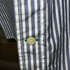 Tommy Hilfiger men's size XL striped blue and white button down shirt. Has one front patch pocket with 'TH' embroidered below pocket in coordinating blue color. Button down collar. New with tags.