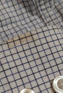 There is a stain on the cuff and yellowing on the collar - please see photos for details