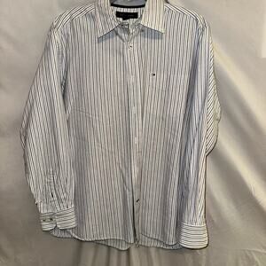 Tommy Hilfiger Mens Long Sleeve Button down Blue White Stripe Size Medium