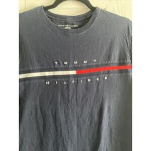 Tommy Hilfiger Men's Medium Navy Spell Out Knit Graphic Tee