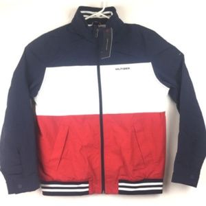 Tommy Hilfiger Mens Medium Red White Blue Box Logo Flag Regatta Jacket