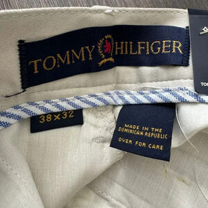 Tommy Hilfiger Mens Micro Tech Men Chino Pant 38x32 Cream Microfiber Preppy NEW