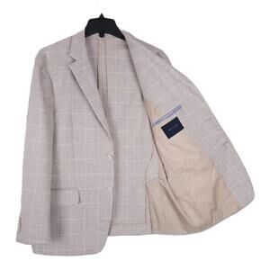 Tommy Hilfiger Men's Modern-Fit Stretch Sport Coat Tan Cream Windowpane 42S NWT