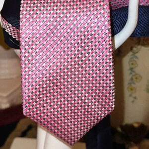 Tommy Hilfiger Men’s NWT Classic 100% Silk Neck Tie Basket Weave Light Gray, Bubble Gum Pink NEW WITH TAGS!!!