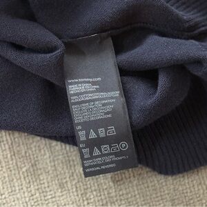 Navy blue base with beige argyle diamond pattern across the chest. Subtle embroidered Tommy Hilfiger flag logo on chest.