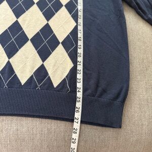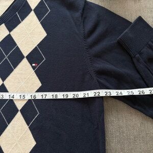 Tommy Hilfiger Mens Navy Beige Argyle V Neck Sweater 100% Cotton Size L