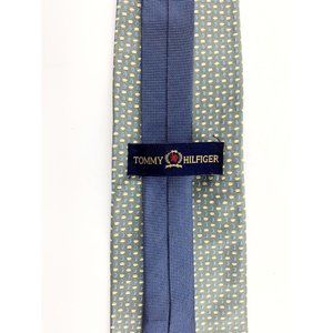 Tommy Hilfiger Men's Necktie. Green, w/ Blue & Yellow Geometric Pattern. Silk.