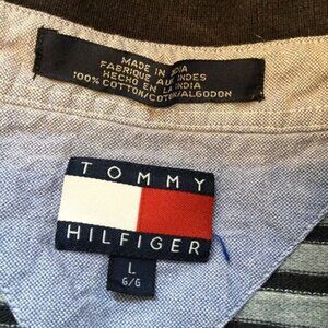 Tommy Hilfiger Mens Polo Shirt Size L Striped Golf Preppy Flag Tag Short Sleeve