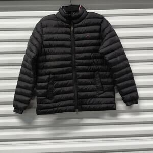 Tommy Hilfiger Men’s Packable Puffer Jacket Black Size Large Lightweight Quilted Zip Up Casual Streetwear Preppy