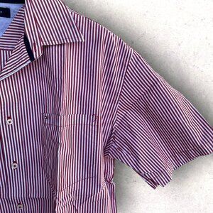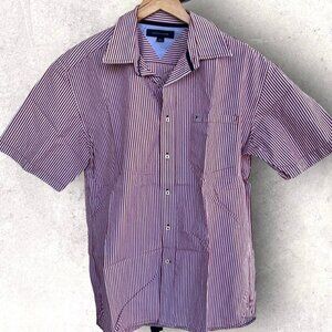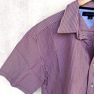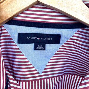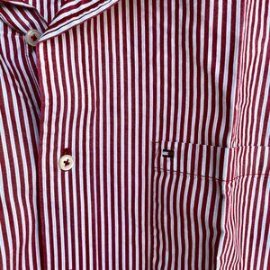 Tommy Hilfiger Mens Red White Strip Short Slv Button Regular Fit Oxford Size L